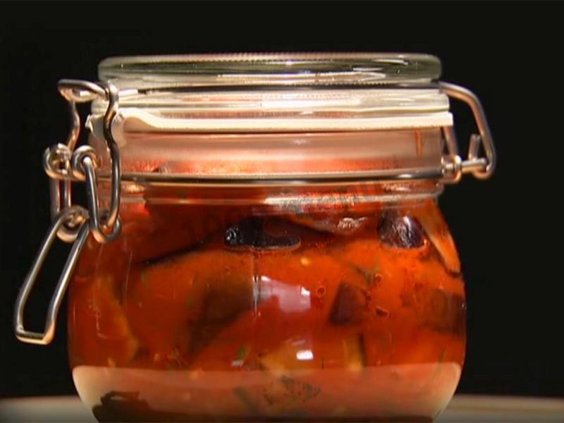 Жареные баклажаны на зиму с помидорами, пряностями и уксусом