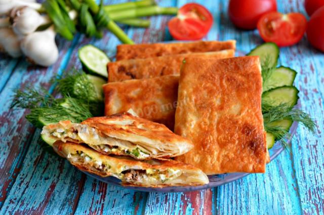 8. Обжариваем конвертики из лаваша на растительном масле с двух сторон.