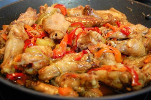 Жареные куриные крылышки с болгарским перцем с соевым соусом