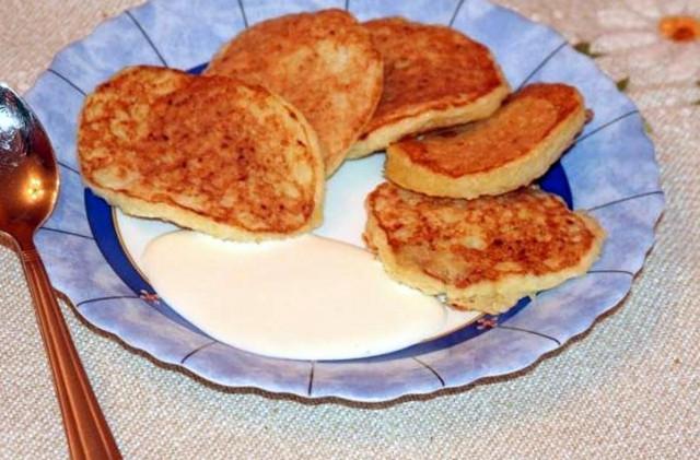 Кушать оладьи вкуснее всего со сметаной. Такая еда понравится даже самому маленькому члену вашей семьи. Приятного аппетита!
